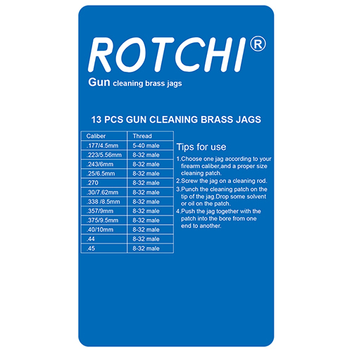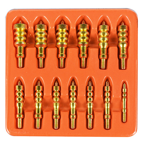 تفنگ 13 عددی پارچ برنجی تمیز کننده مجموعه، بسته کارت بلستر، اندازه ها: 0.177، 0.22، 6mm، 0.25، 0.27، 0.30، 0.338، 0.35، 0.357، 0.40، 0.44، 0.45، .50 کالری.