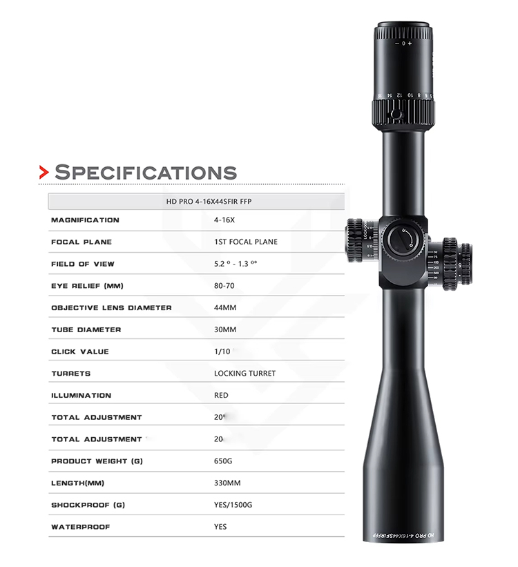 Optics HD PRO 4-16X44 SFIR FFP با مقاومت در برابر شوک بالا لوله 30 میلی متری تیراندازی طولانی مدت تاکتیکی