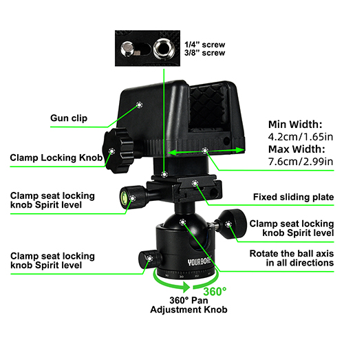 OEM CNC آلومینیومی 360 درجه با سر توپ تیراندازی گیره تکیه گاه زین برای سه پایه مونوپاد تیراندازی شکار