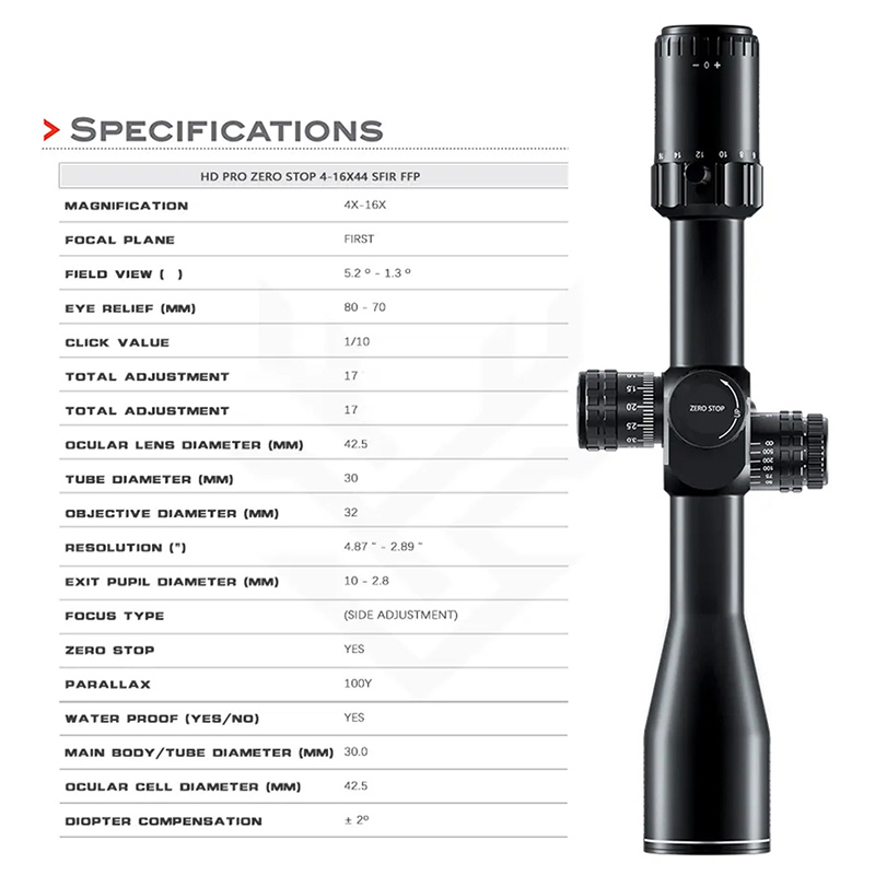 Optics HD PRO ZERO STOP 4-16x44 SFIR FFP High Shock Resistance Hunting