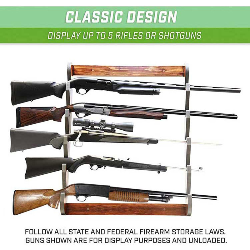 قفسه نمایش سلاح گرم دیواری GoSports Outdoors با لکه چوبی ممتاز - دارای 5 تفنگ یا شاتگان |