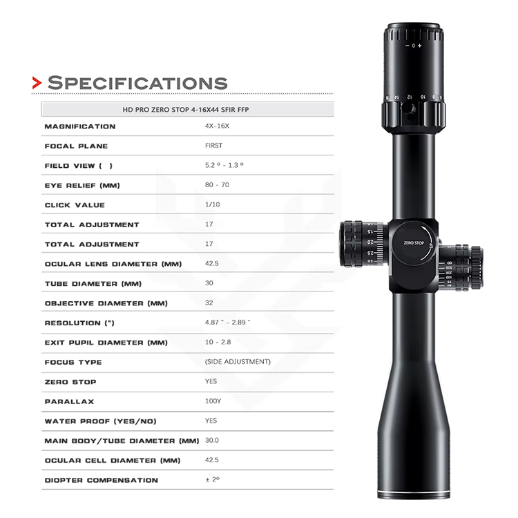 ZERO STOP 4-16X44 SFIR FFP-A با قطر 30 میلی متر HD انتقال نور صفر محدوده شکار توقف Ffp